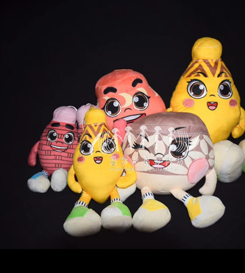 文創(chuàng)毛絨玩具娃娃尖底瓶雙聯(lián)壺月牙罐花瓣紋曲腹盆